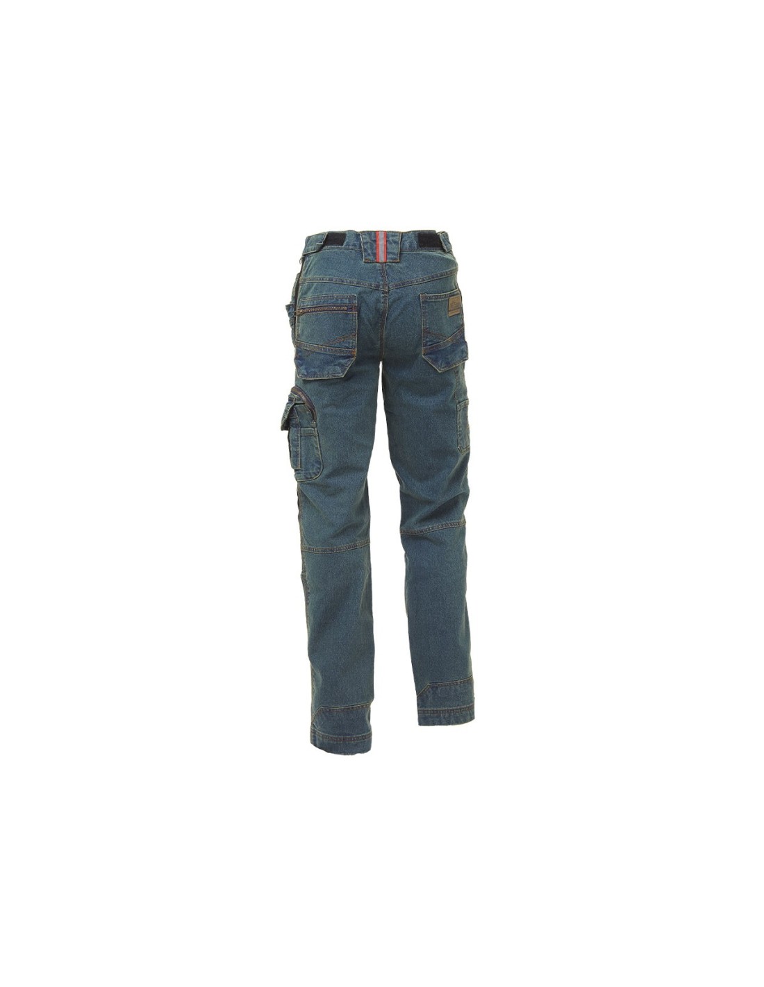 Pantalón en tejido jeans stretch. 2 amplios bolsillos delanteros con técnica stretch; monedero, bolsillo lateral para herramientas, funcional multibolsillos con porta teléfono, 2 bolsillos traseros con sistema Pocket libre, uno con un cierre de broche de seguridad, porta martillo. Insertos elástico técnicos en la rodilla, ajuste de la cintura con velcro. Triple costura.